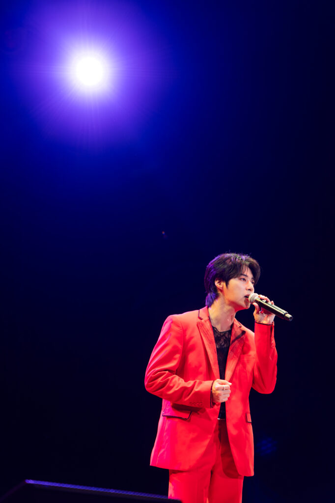 ファンミーティングでは5人が、『ミスタートロットジャパン』でおなじみの赤い衣装に身をつつんで登場し、近藤真彦さんの『ギンギラギンにさりげなく』を熱唱。同曲は5人が韓国のTV CHOSUN特別番組『愛のコールセンター』に出演した際に披露した楽曲で、5人そろって歌う姿に会場から歓声が沸き起こりました。