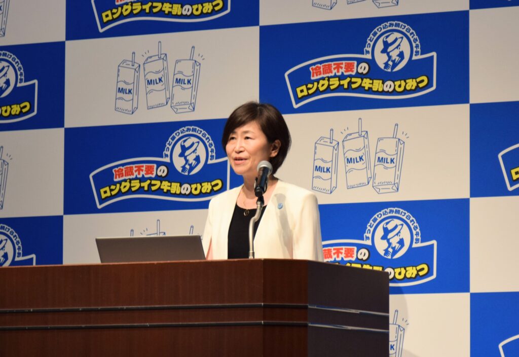 主催者である鍛治氏は、「ロングライフ牛乳の最大の魅力は、①常温で数ヶ月間の長期保存ができること。これにより、②まとめ買いがしやすく、冷蔵庫のスペースを圧迫しないため、買い物の負担を大きく軽減できます。さらに、③賞味期限が長いためフードロス削減にも繋がります」とそのメリットを強調した。