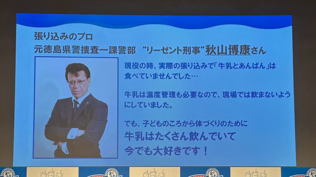 映像出演した”リーゼント刑事”こと犯罪評論家の秋山博康氏は、元刑事の視点から「牛乳とあんぱんは食べてなかったですねえ」とは語ったものの「牛乳はたくさん飲んでいて今も大好き」と語られた。