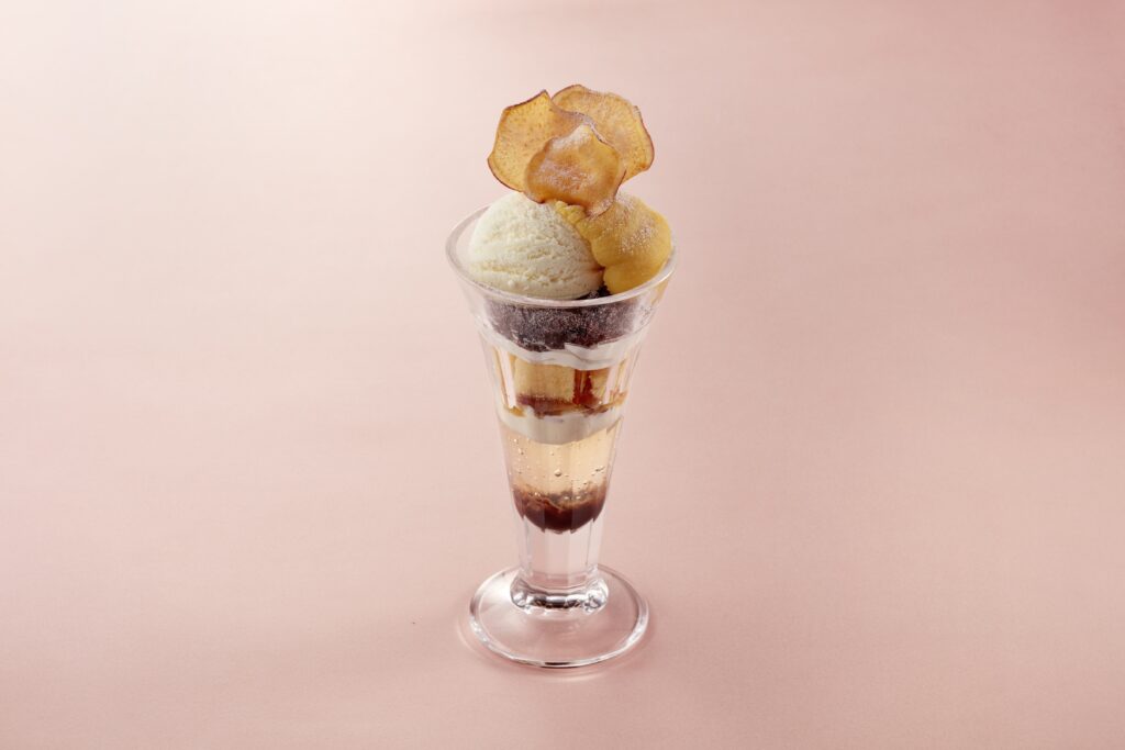 そして秋山さんが絶賛していたのが、『お芋とフロマージュの濃密パフェ』(税込¥768)。濃厚なスイートポテト&フロマージュと林檎ゼリーのみずみずしい蜜感がコラボし、さつまいもチップがアクセントとなっています。