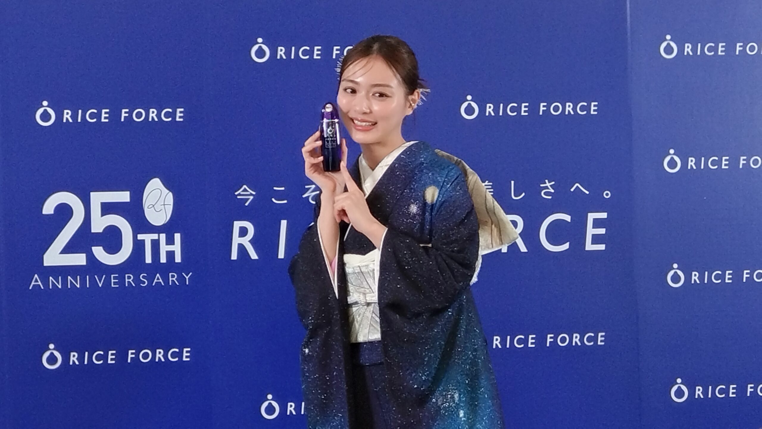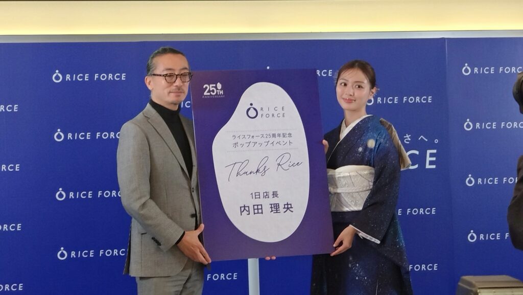 スキンケアブランド『ライスフォース』の発売25周年を記念したポップアップイベント『Thanks Rice』が21日、東京駅構内の『スクエア ゼロ』でスタートしました。初日にはオープニングイベントが開催され、俳優の内田理央さんが1日店長として登場。ブランドカラーである深いブルーの艶やかな着物姿で、お米への愛や美の秘訣について語りました