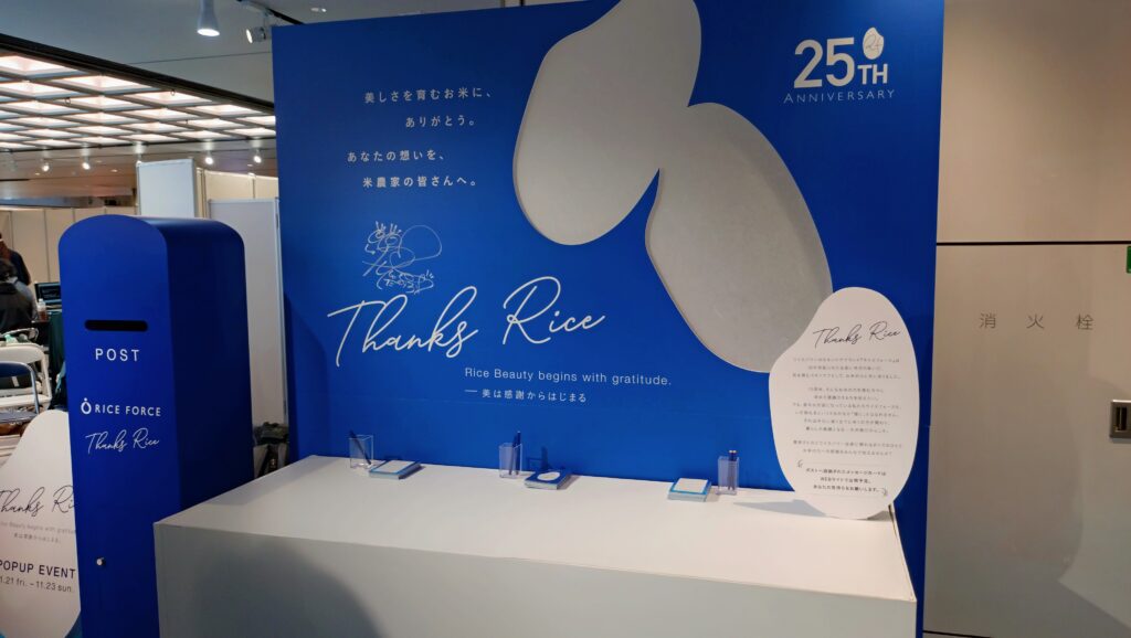 本イベントは、11月23日までの3日間限定で開催。ライスフォースの代表的な『ディープモイスチュアシリーズ』などを実際に試せるタッチアップブースや、全国の米農家へ感謝を届けるメッセージブースが設置されている。また、公式Instagramのフォローと投稿で、ロングセラー化粧水『ディープモイスチュアローション』のサンプルプレゼントも実施されます。
