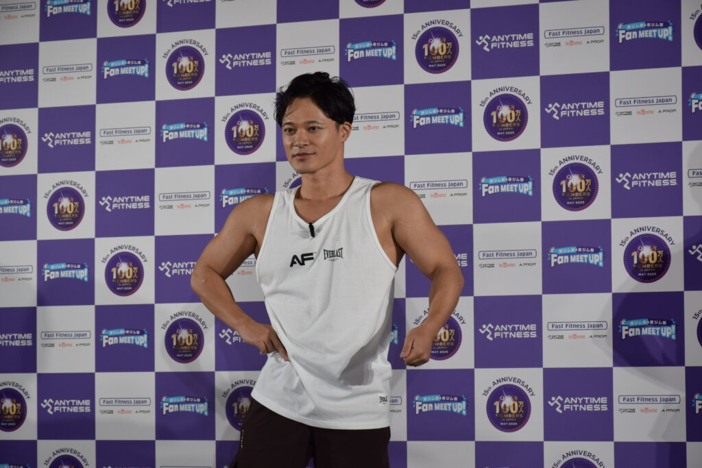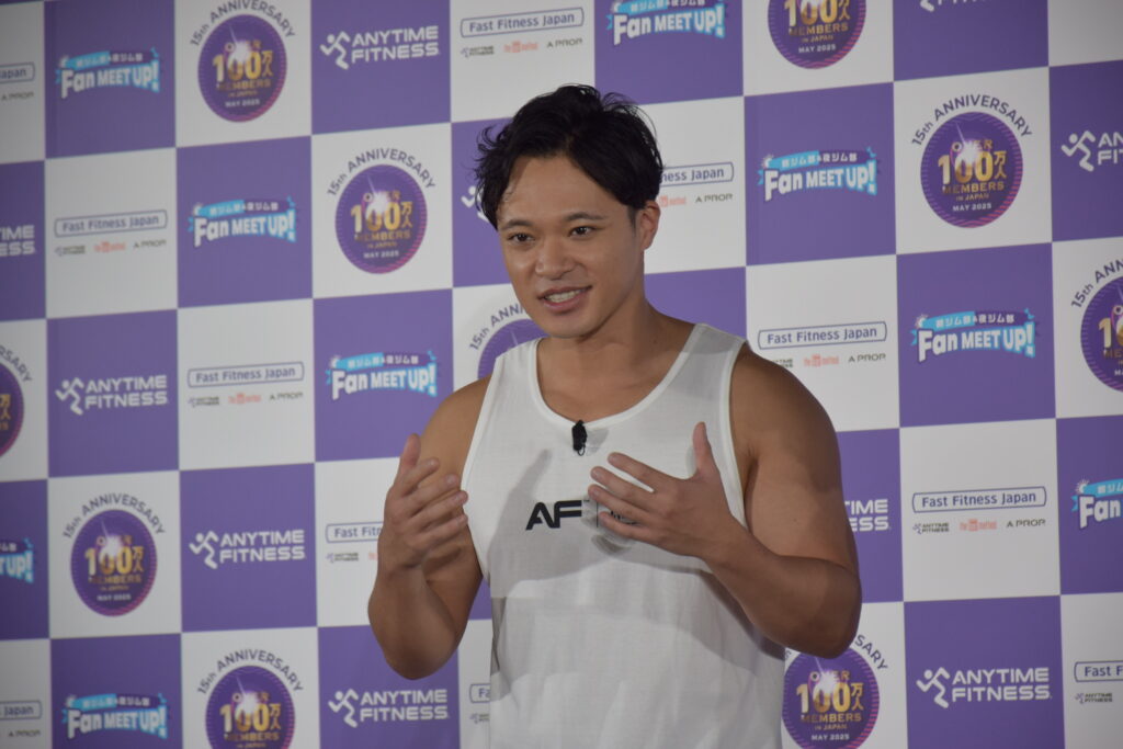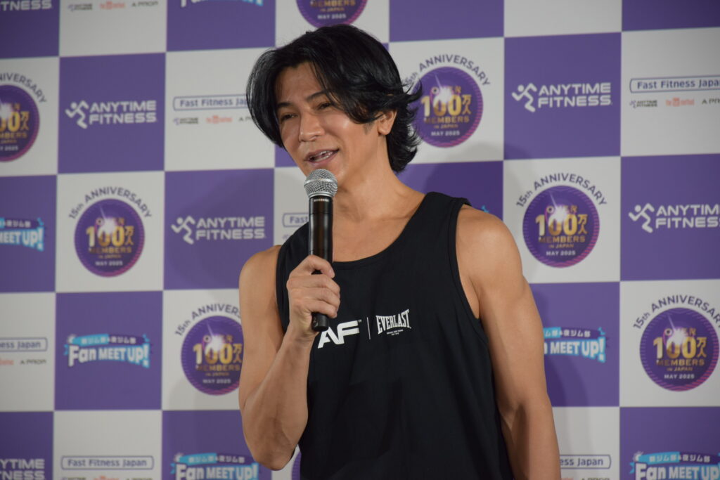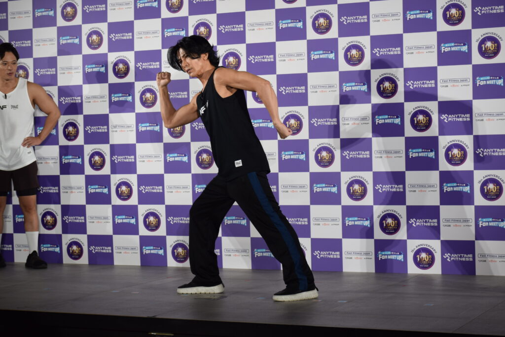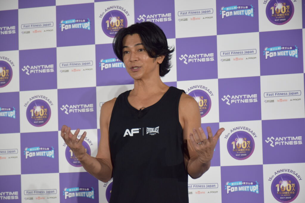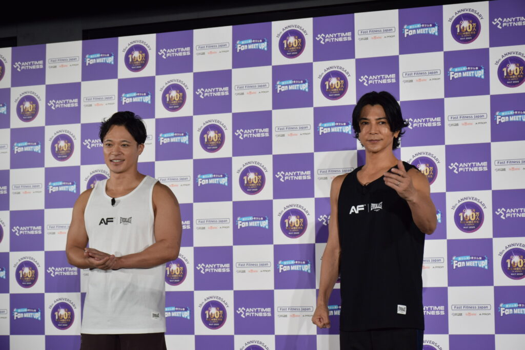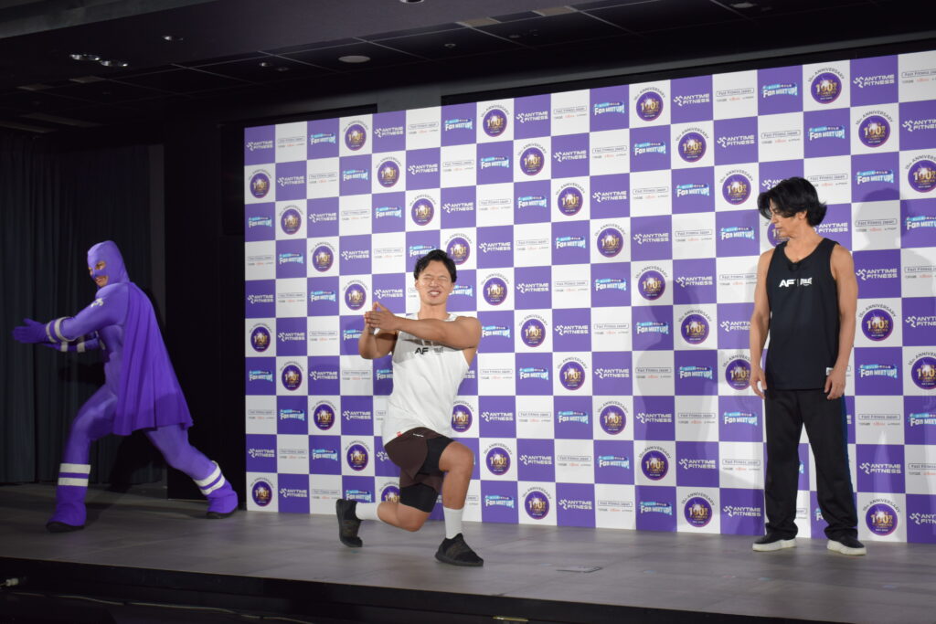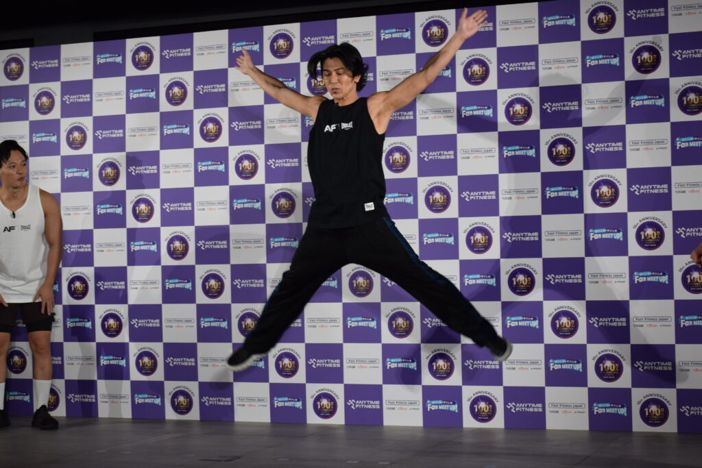 一方、武田さんは「スタージャンプ」から、エニタイムフィットネスのマークでもある「ランニングマン」を取り入れたオリジナルポーズで会場を圧倒。「夜ジムは大人の社交場のような楽しさがある」と表現しました。
