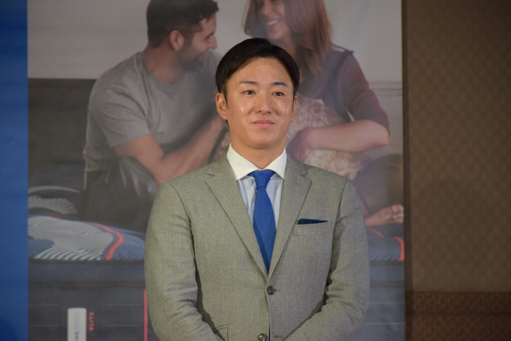 元プロ野球選手で株式会社斎藤佑樹の代表取締役・斎藤佑樹氏が15日、東京・港区のシーリー東京ショールームで行われた『SEALY 新商品メディア発表会』に登場しました。