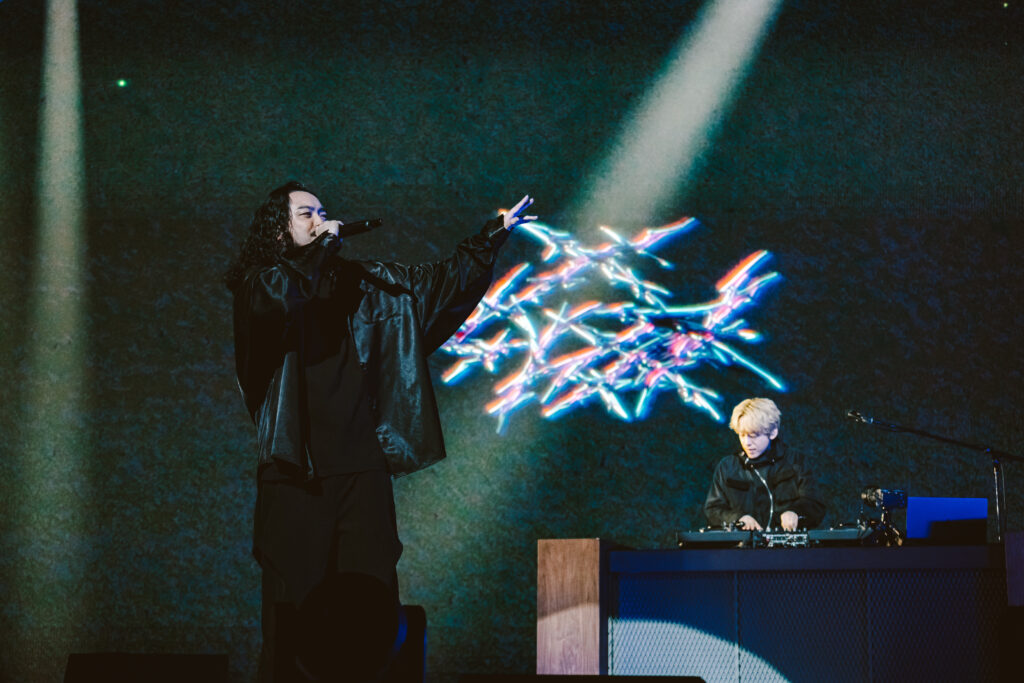 続いてステージ後編に登場したのは、DJ松永とラッパー・R-指定の2人によるヒップホップユニット・Creepy Nuts。世界的大ヒットとなった『Bling-Bang-Bang-Born』で会場を一体化させると、R-指定は「俺たちのステージはみんながダンサーやからな!」と観客を煽り、会場のボルテージを最高潮に引き上げました。