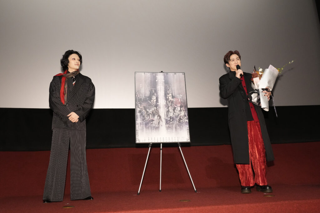 本作は、2024年11月・12月の新橋演舞場公演を映像化した『歌舞伎NEXT』シリーズの最新作。幸四郎さんと染五郎さんはこの日、作品を象徴する「赤」を基調とした衣裳で登場しました。