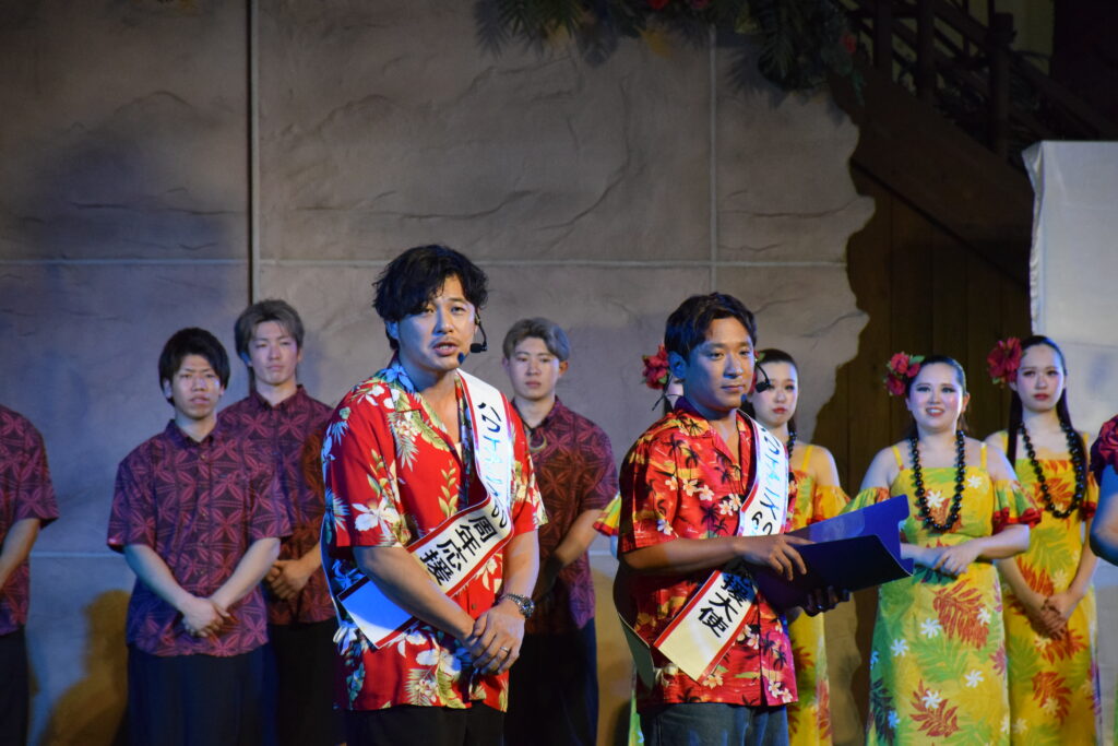 この日は『ハワイアンズ還暦祭』が開催され、アルコ&ピースの平子さんと酒井さんが駆けつけました。平子さんは「私、平子と申しまして。出身が福島県いわき市小名浜。小名浜第二中学校を卒業して、(福島県立)勿来工業高等学校を卒業し、東京に出たものでございます」と自己紹介。「まさに、この地元いわき出身ということで、本日皆さまの前でごあいさつできてうれしいです」と笑顔を見せました。