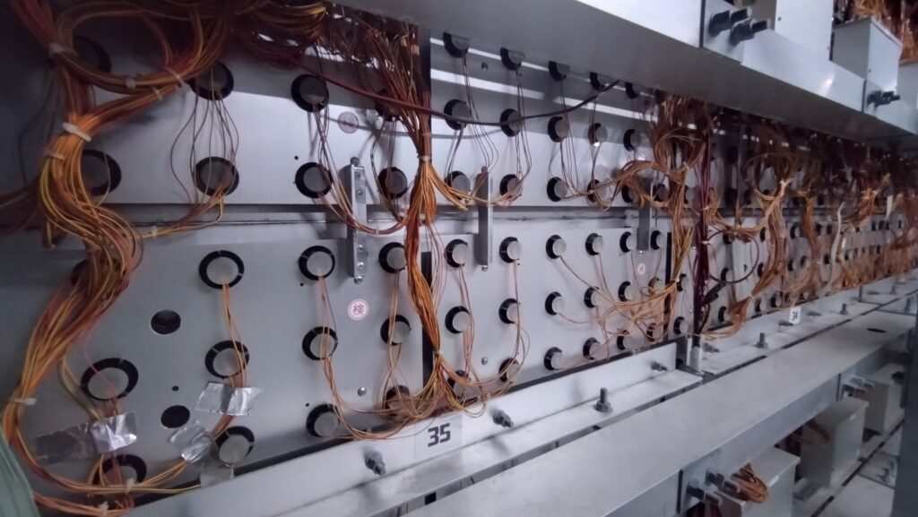 看板の内部には、温度・湿度を計測するための「百葉箱」や、看板の色を変えるLED、複雑な制御装置が並びます。