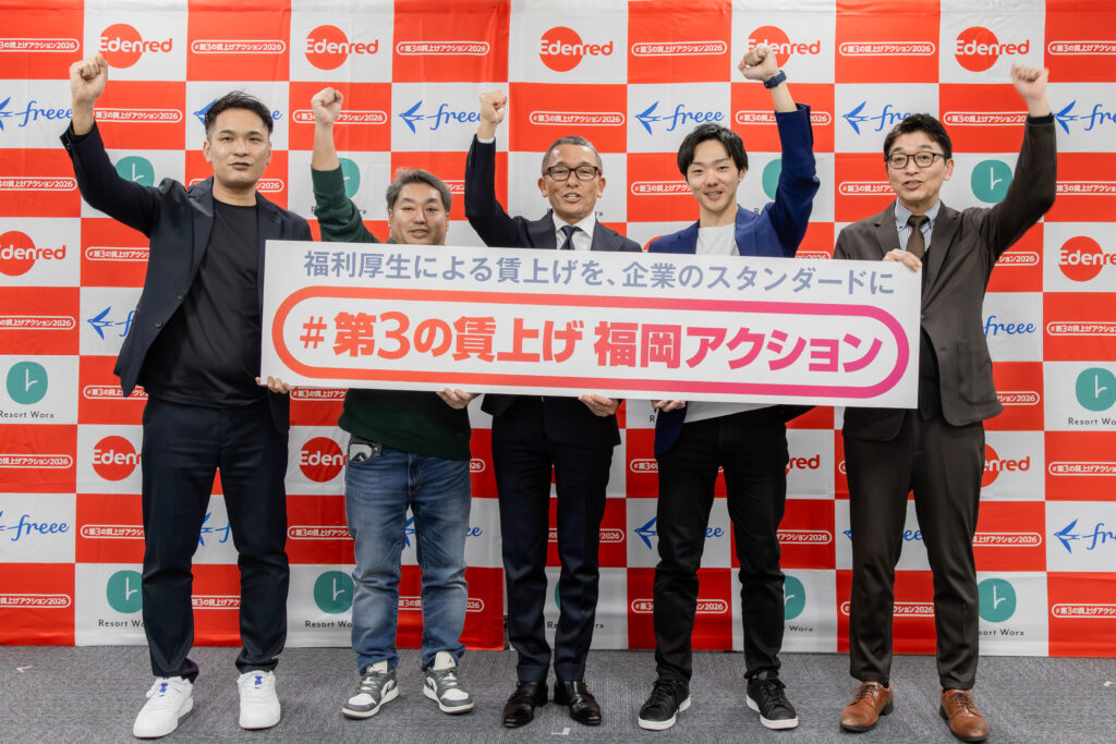 2月に福岡市内で開催された「#第3の賃上げ福岡アクション」発表会。ここでは、企業の福利厚生をさらに魅力的なものにすることで、従業員の生活を本気でサポートしようという、画期的な取り組みが紹介されました。