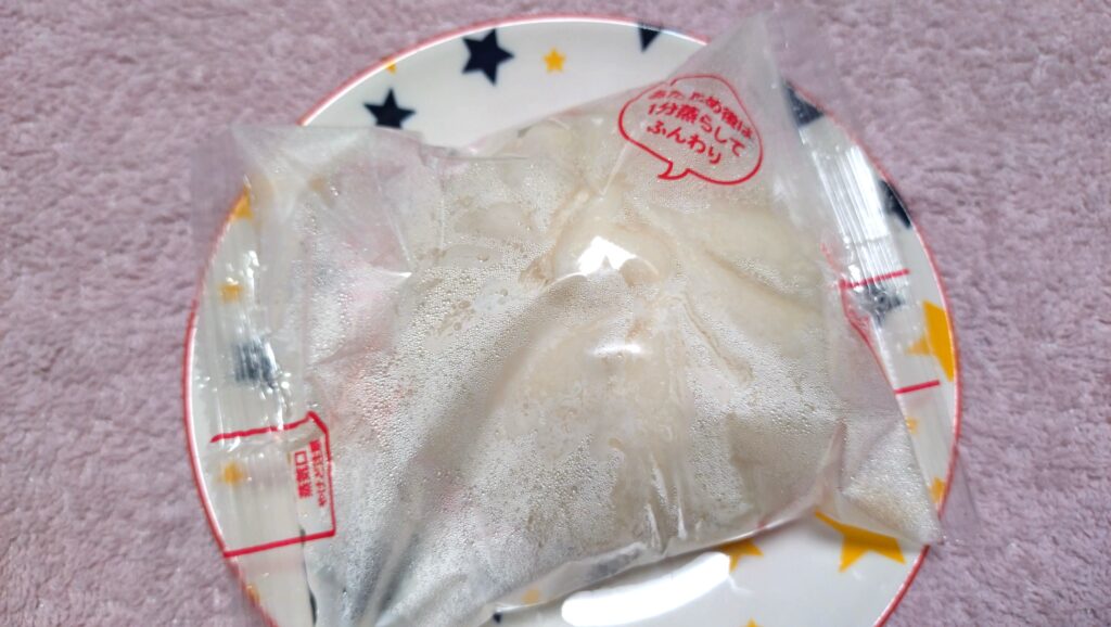 封を開いて取り出して湿らす必要なく、この袋のままお皿にのせてレンジに入れれば、しっとりふわふわの『肉まん』が完成します。