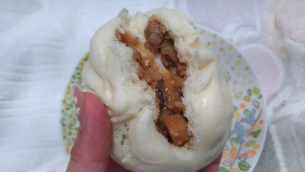しっかりと濃いめの味付けの豚肉に、チーズがとろっとトロけて伸びて、まろやかな口当たりに。肉まんよりも濃厚で、ビールなどのお酒にも合います。
