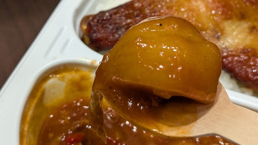 ジューシーなチキンはやわらかく、ボリュームたっぷり。ほんのり甘く、ややスパイスの効いたクセになる味わい。