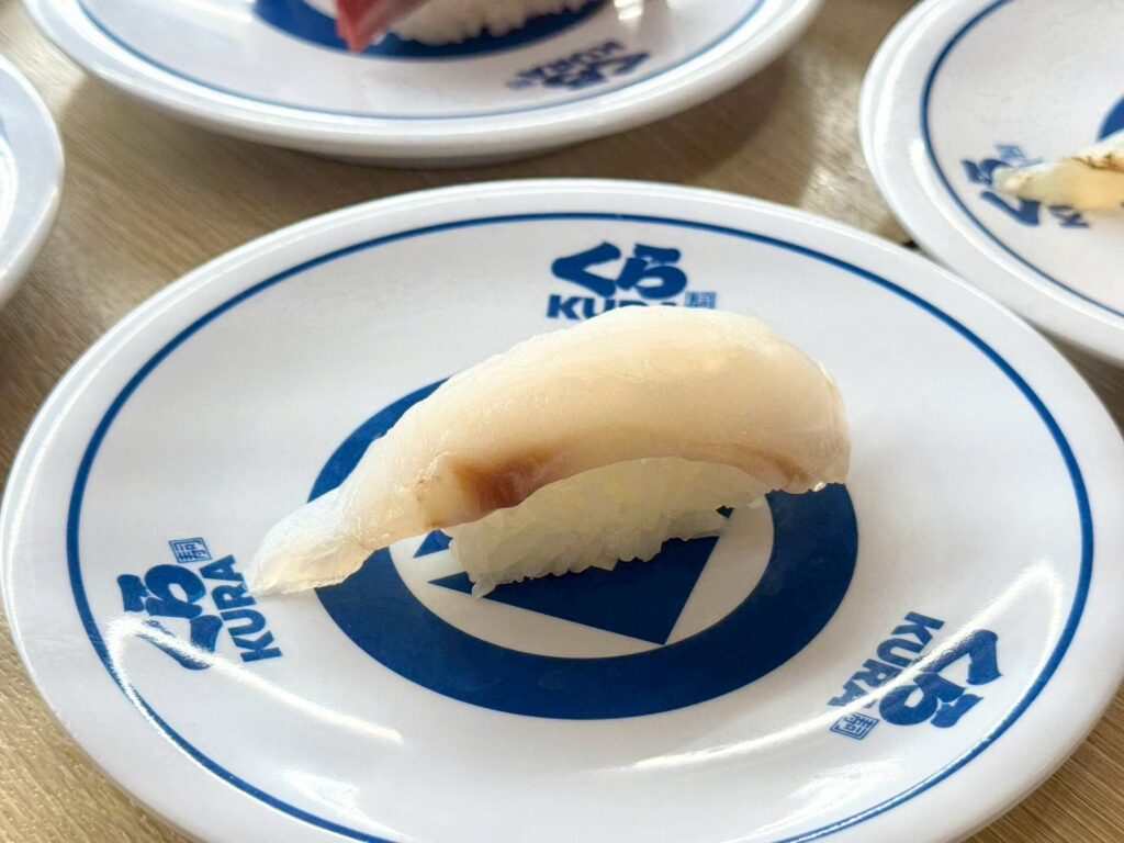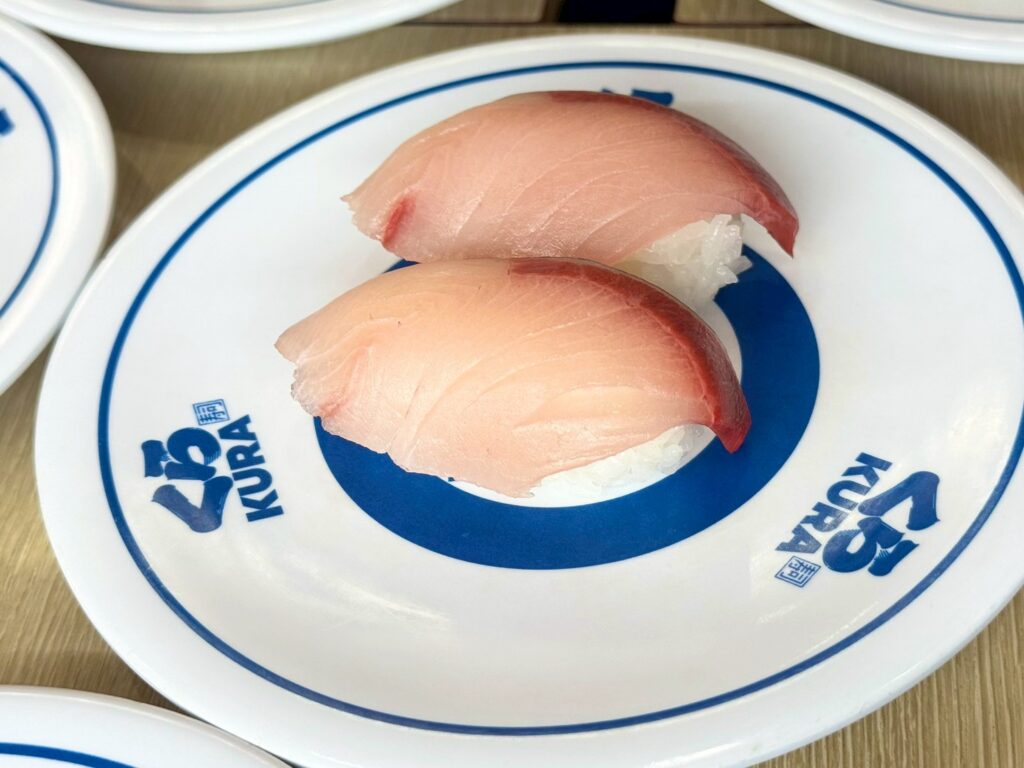 くら寿司といえば、みかんの皮やオイルなどをエサにまぜて育てた『フルーツ魚(フルーティーフィッシュ®)』が有名です。こちらは柚子を混ぜたエサで育てたブリ。たっぷり乗った脂と、後味のさっぱりとした柚子の香りが楽しめます。