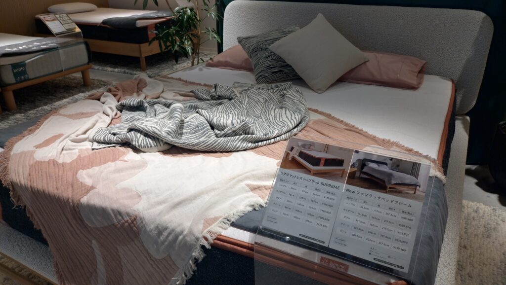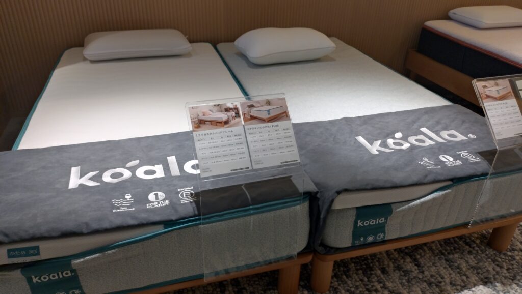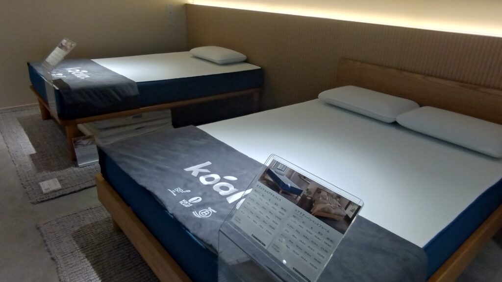 マットレスは『オリジナルコアラマットレス』と上位モデルの『コアラマットレス PLUS』、最上位の『コアラマットレス SUPREME』の3種類。“ゾーニング”といって、『オリジナルコアラマットレス』はマットレスが3分割になっており、それぞれが足・腰・頭を支えます。『コアラマットレス PLUS』と『コアラマットレス SUPREME』になると”ゾーニング”が5分割、7分割とより細かくなり、体を支えてくれます。