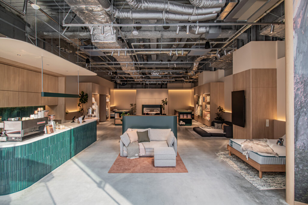 ショールームにはカフェも併設されており、オーストラリアのカフェ文化も再現されています。マットレスやラグを見てまわりながら、ホッと一息つくこともできますよ!