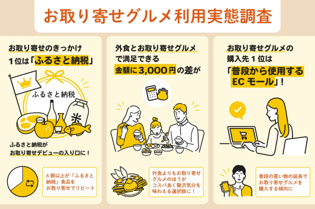 調査結果からは、ふるさと納税をきっかけにお取り寄せを始め、外食を控える代わりに自宅で「日常のごちそう」を楽しむ層の実態が浮き彫りになっています。