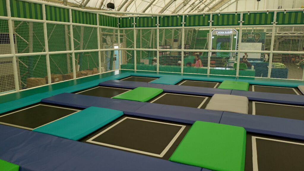 また、アスレチックを上に進んでいくと、トランポリンのコーナーも。