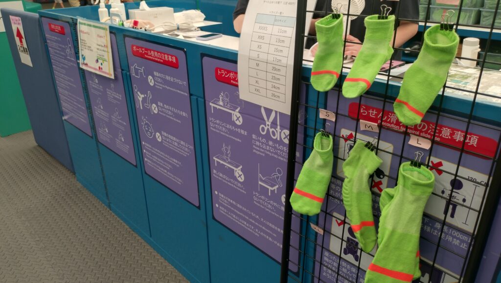 靴を脱いで、子どもも大人も専用の靴下を購入して入ります。