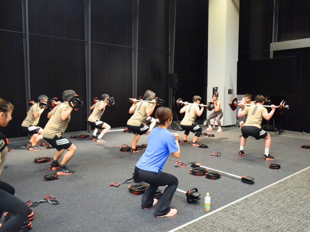 最後は『adidas DROPSET 4』を履いて”Les Mills”を体験しました。”Les Mills”とは、ニュージーランド発祥の世界的なグループフィットネスプログラムで、音楽に合わせてトレーニングするものです。