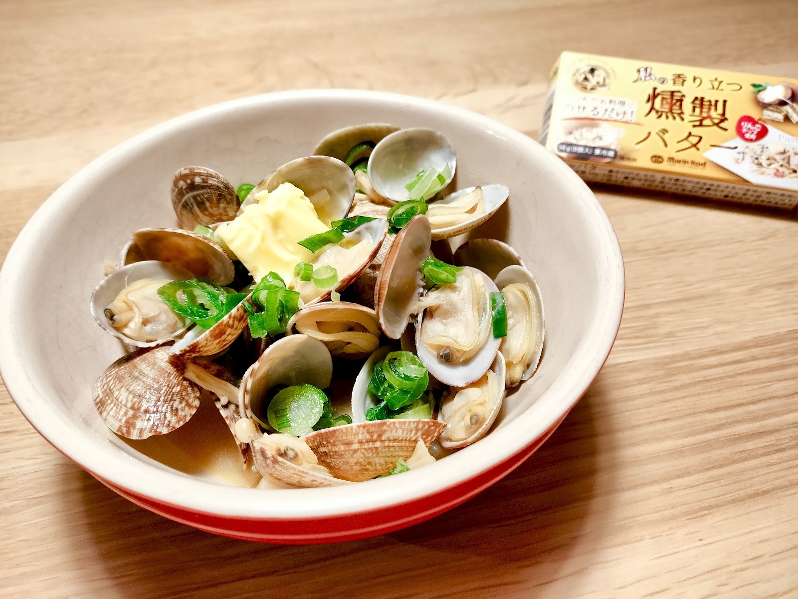 実際に食べてみると、燻製の香りがふわっと鼻を抜け、コクのあるバターの味が口いっぱいに広がります。普通のバターで作った酒蒸しよりも深みのあるうま味を感じられ、お酒のおつまみにもぴったりです。