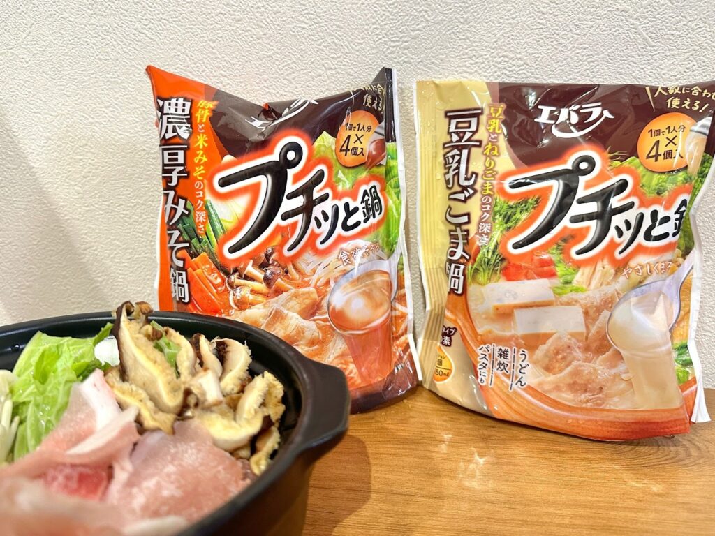 鍋と言えば、エバラ『プチッと鍋』シリーズを思い浮かべる方も多いのではないでしょうか。『プチッと鍋』シリーズは2013年8月の販売開始から10年以上ずっと変わらない大人気商品。販売当初は、当初は寄せ鍋、キムチ鍋、白湯鍋の3種類でしたが、現在はなんと9種類!