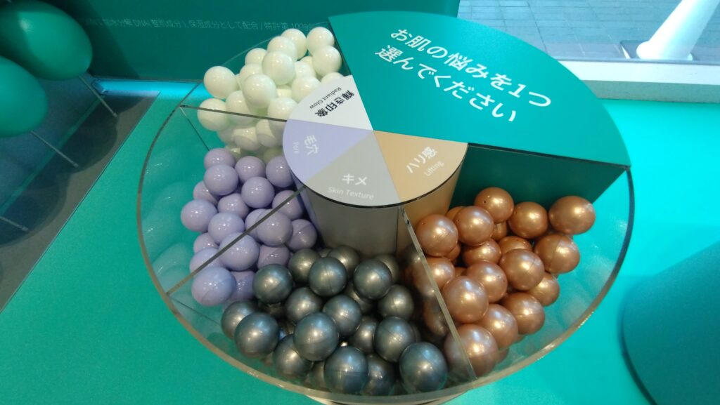 さらに会場では、「ハリ肌」「キメ」「毛穴」「輝き印象」の4つから肌悩みに合わせたカラーのボールを選びます。この肌悩みボールを持っていると、スタッフさんが肌悩みに合ったシリーズを提案してくれるのです!