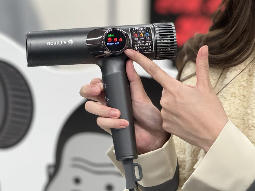 「健康家電を使ったことがない層」や「価格が高くて手が出ない層」に向けて開発したのが『ゴリラのひとつかみ』でした。その他に困っていることがないか…と考えてたどりついたのがドライヤーでした 。開発背景には、「お風呂に入ることよりも、その後のドライヤーが面倒」「子どもの髪を乾かすのが優先で自分の髪は自然乾燥」といった、リアルな悩みが多くありました。