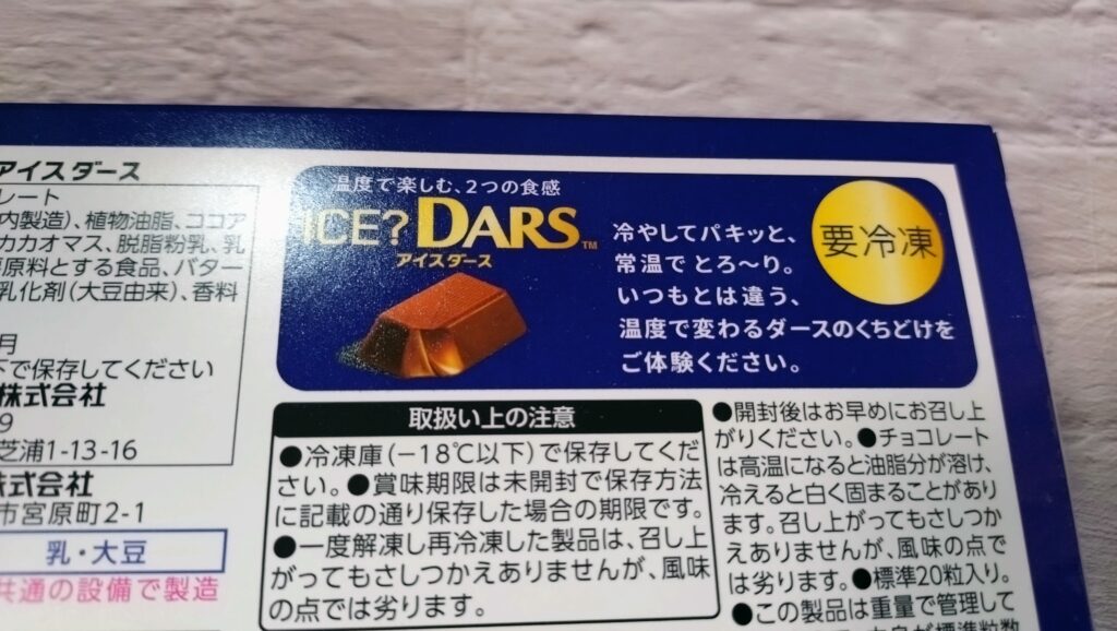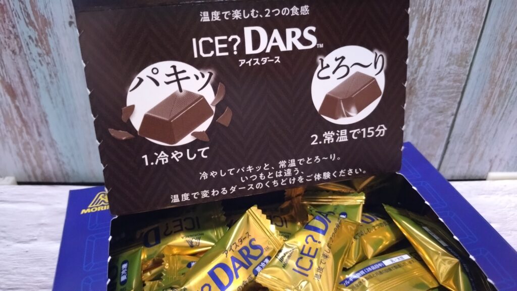 ということで、早速、冷凍庫で冷やした『アイスダース』を食べてみました。見た目はチョコレートの『ダース』です。