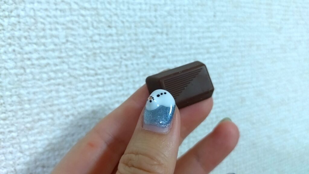 その後、15分以上置いたものを食べてみると、(写真では分かりづらいですが……)、内側のチョコが少し溶けていて、冷たいながらもトロッと食感! これもまた、通常のチョコレートの『ダース』の硬さとも違い、クセになる感覚です。